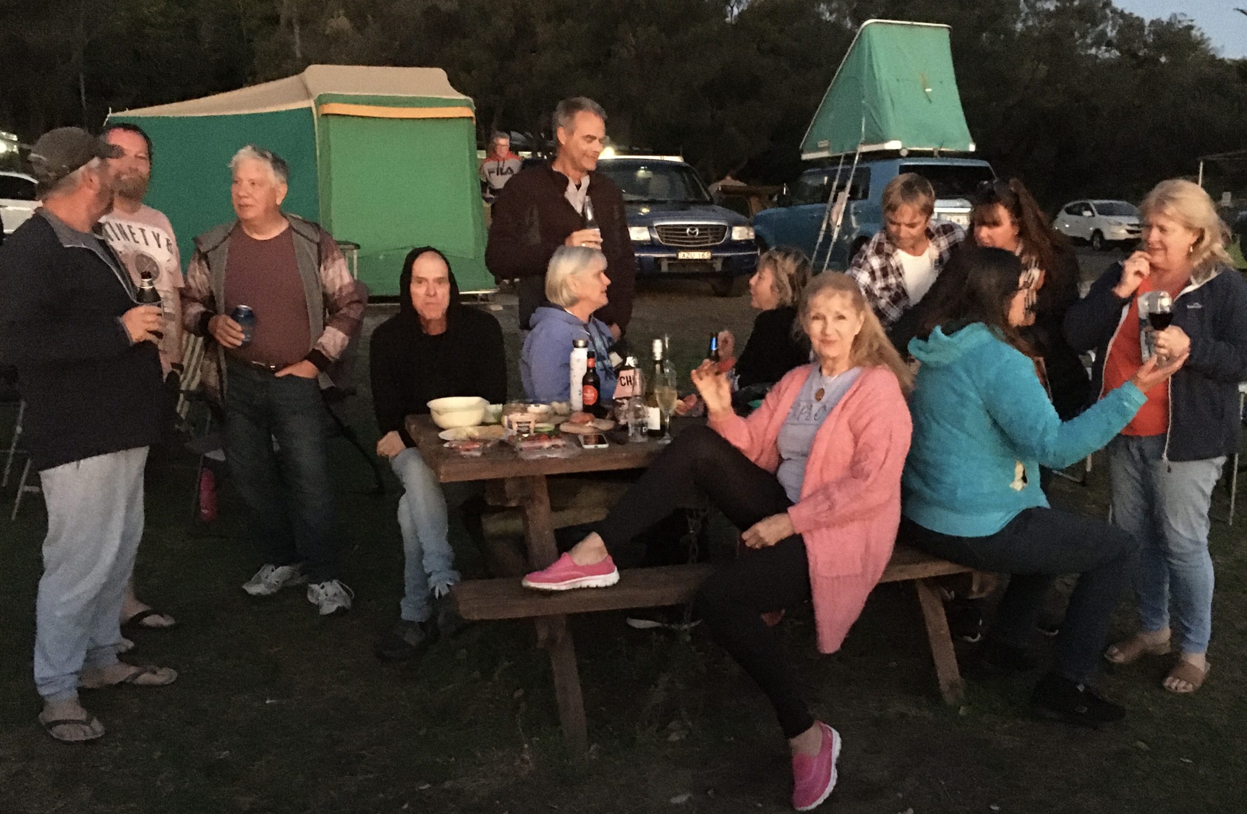 Morning sunshine, yay. It’s a short hop to Trial Bay Gaol where my Meetup group is camping for the weekend. First, must repair my tent, post a box full of gifts, discard more crates of food and junk. A chance to relax at last? Yes! With a glass of wine at sunset. Oh. What are those lumpy dark things on the lawns? Campers are saying the birds started falling out of the trees when the rain started.