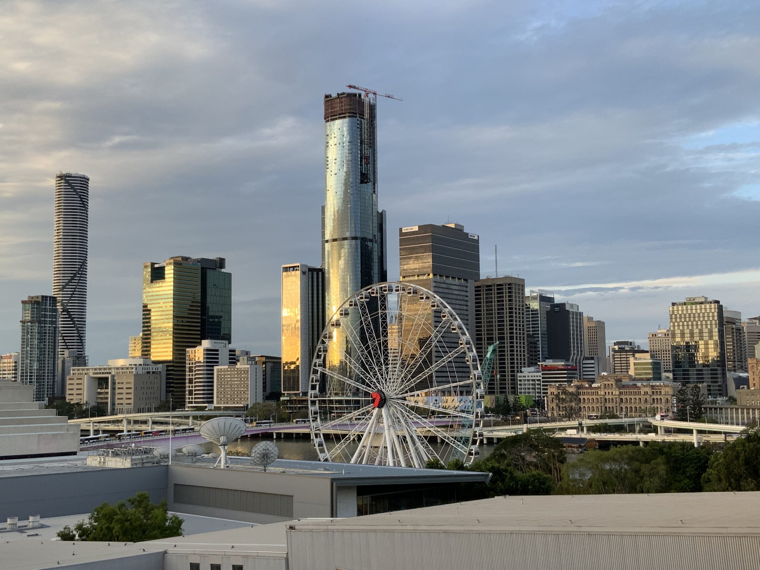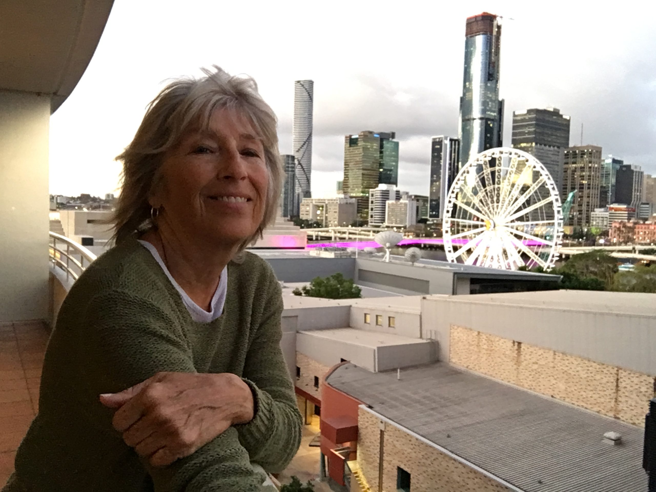 The food is glorious. They’ve catered to my “dietary requirement” and I’m delivered a fresh salad every day. I had a few bottles of wine delivered by Dan Murphy. Fresh flowers from a nature lover. Both TVs are huge. I’ve got my working gear with me. I have a choice of couches, armchairs, desks and tables. Every morning the sun pours through my two large balconies and across my bed. I have my coffee looking across the South Bank to the river. I’m on the balcony again at night with my glass of wine watching the setting sun light up the fancy buildings. I’m slowing down; I can stop making bookings and coordinating schedules.